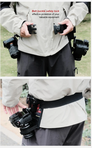 El Cinturón Profesional de cámara DUAL 50D LYNCA es el cinturón profesional definitivo para fotógrafos y videógrafos que necesitan llevar dos cámaras de manera simultánea. Su sistema Hook-On independiente asegura cada cámara con triple bloqueo (principal, secundario y sensor anti-vibración) y permite cambios rápidos y seguros durante sesiones intensas de trabajo.