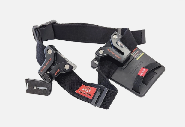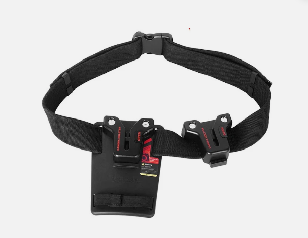 Incluye cinturón, base de montaje, hebillas y placas metálicas para cámaras.