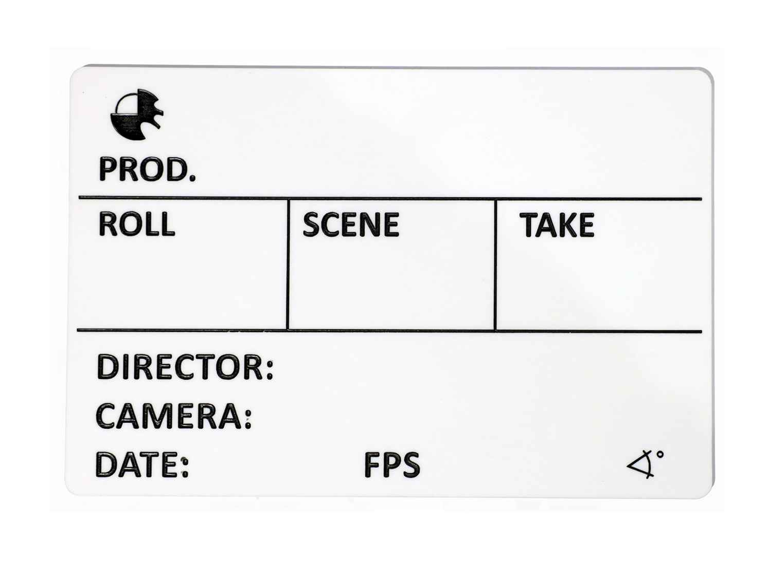 Diseñada sin varilla, su superficie permite escribir fácilmente con rotuladores de pizarra blanca, lo que agiliza la limpieza y el reutilizado entre tomas. Ligera, duradera y práctica, es una herramienta imprescindible para scripts y auxiliares de dirección en un rodaje.