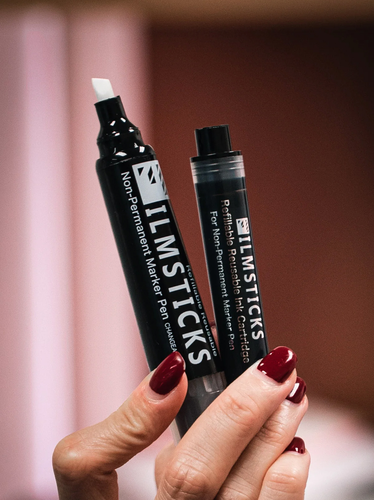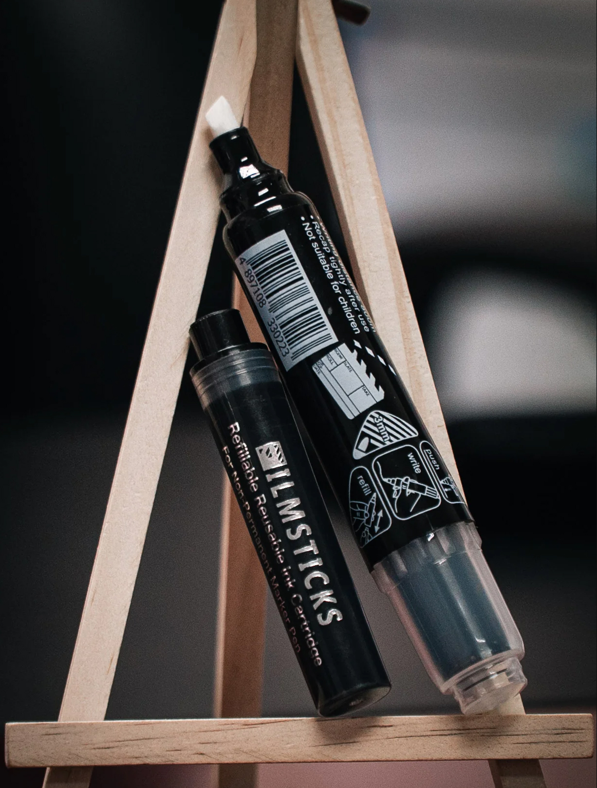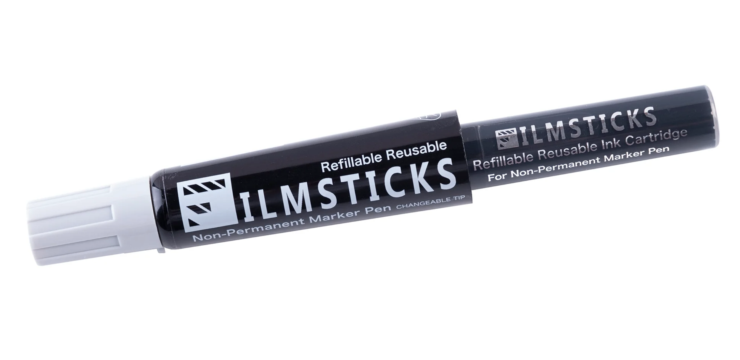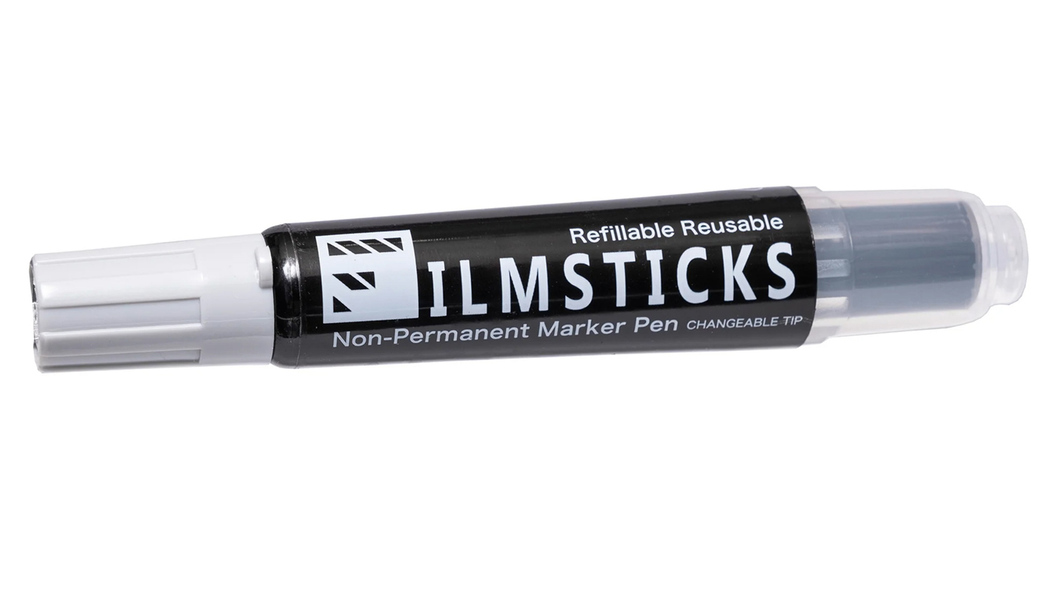 El rotulador Filmsticks es de tinta acrílica no permanente, diseñado especialmente para utilizar con claquetas. Su trazo negro ofrece una alta visibilidad en cámara y se limpia con facilidad sin dejar residuos, permitiendo reescrituras múltiples sin desgaste del material.