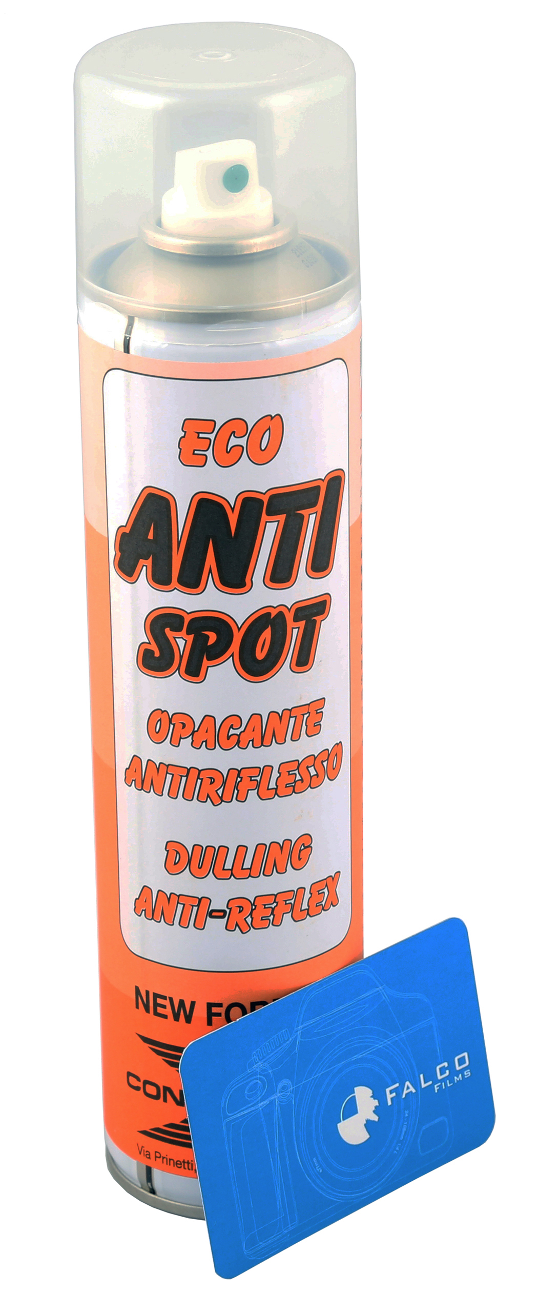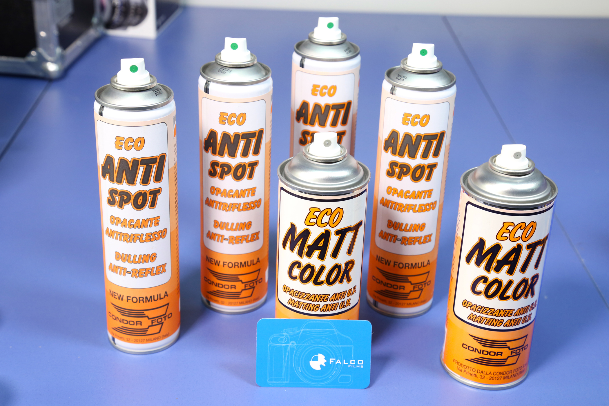 El Spray CONDOR Antispot es un recurso esencial en rodajes y sesiones fotográficas para controlar reflejos en superficies brillantes. Pulveriza una fina capa mate que reduce significativamente los brillos en metales, plásticos, vidrios, maderas barnizadas y otros materiales reflectantes. Muy usado en cine, fotografía de producto, escenografía y platós de TV.
