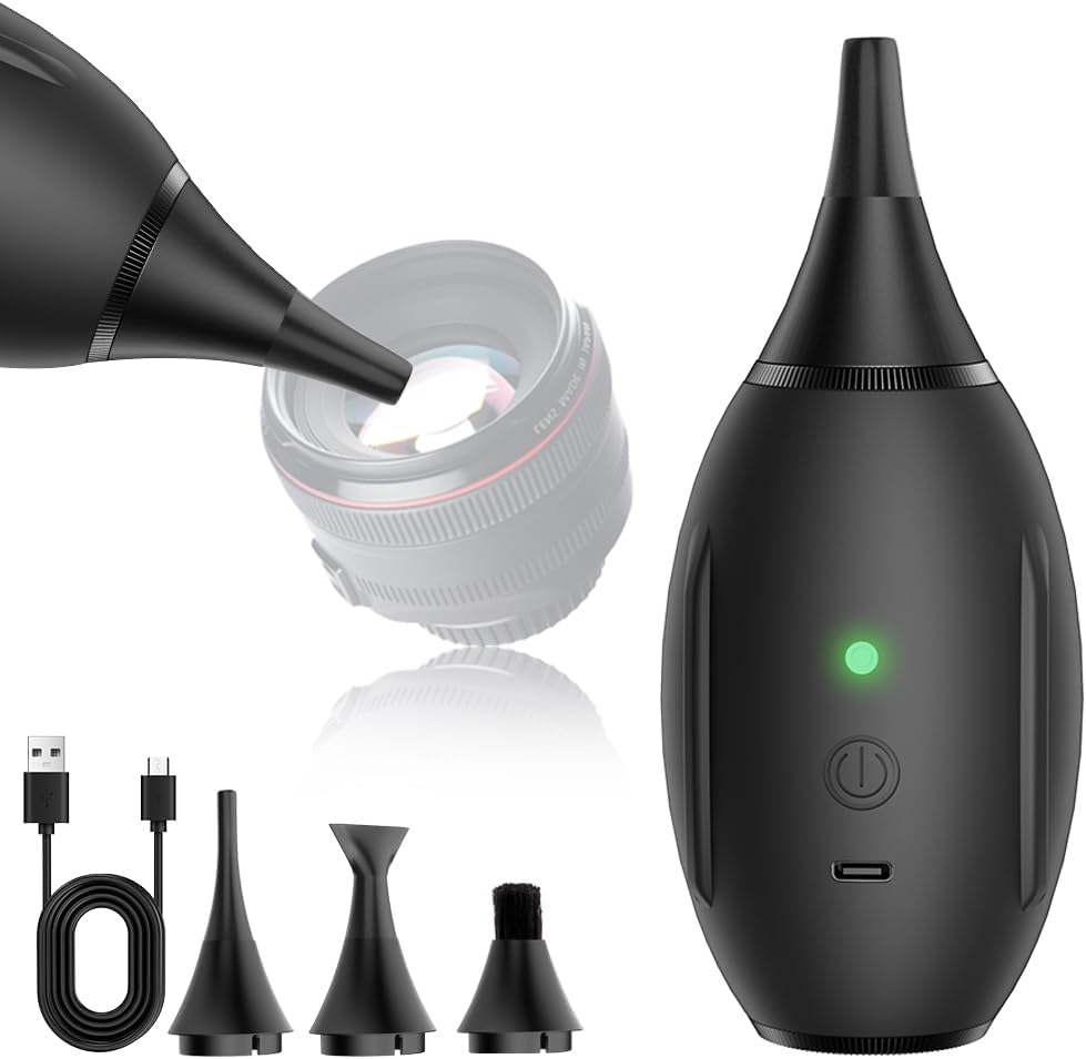 El soplador de aire eléctrico Lynca 2 en 1 es una herramienta profesional diseñada para la limpieza segura y eficaz de sensores CCD/CMOS, lentes y equipos fotográficos. Gracias a su sistema dual de soplado y aspiración, permite eliminar partículas de polvo sin contacto directo, reduciendo el riesgo de dañar superficies delicadas.